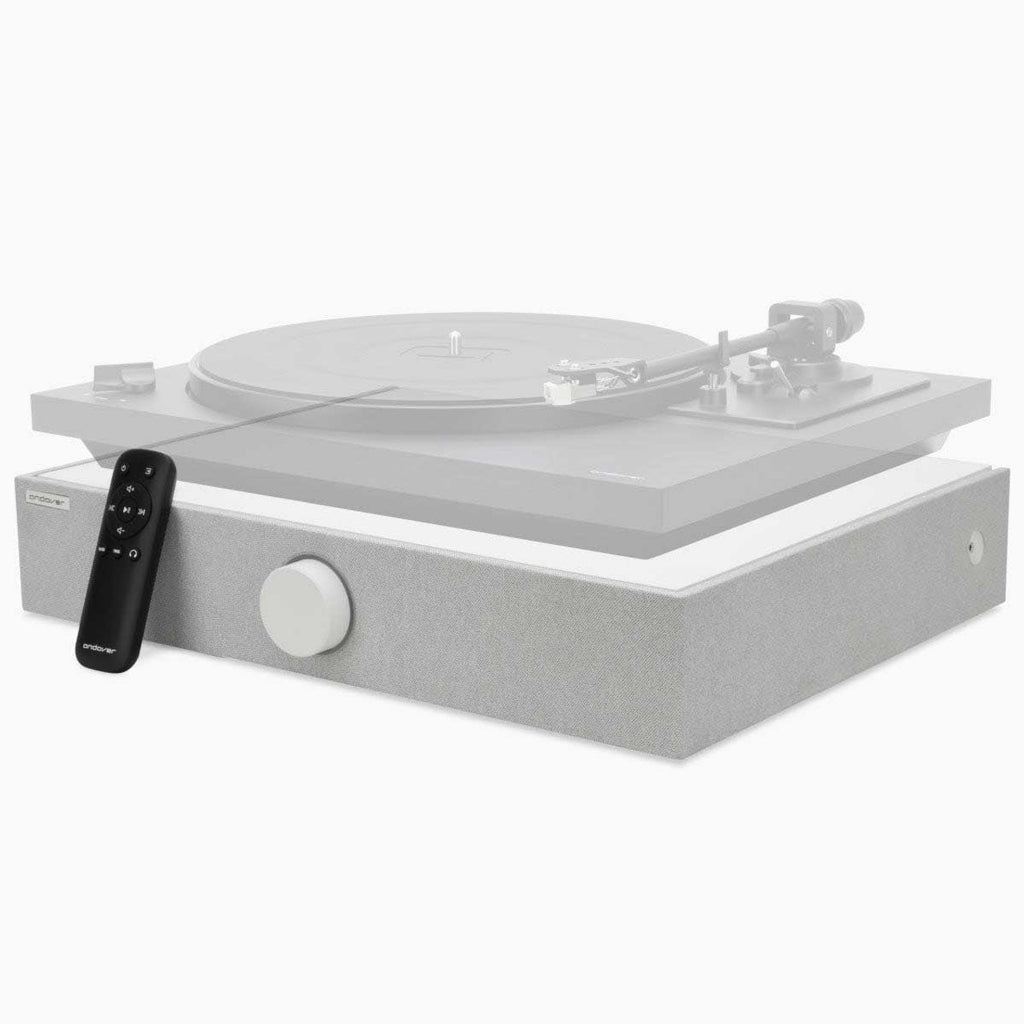 The SpinBase 2 isn't just about sound—it's a feast for the eyes, too. Wrapped in gorgeous heathered fabric with Andover's iconic control knob, it'll complement any room, whether you choose black or white. And with a built-in power supply, gone are the days of bulky wall-warts cluttering up your space. Just plug it in, connect your turntable, and you're ready to enjoy music the way it was meant to be heard.